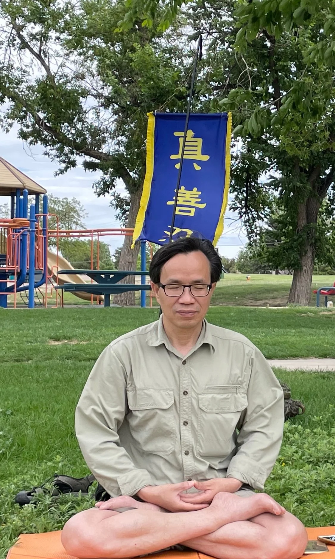 This beautiful location has gigantic shade trees frequently visited by bald eagles and hawks. We face out to Prospect Lake backdropped by a spectacular view of the Front Range mountains. We practice right next to a playground, so bring your kids, there is plenty to do. Everyone is friendly and happy to help others learn.